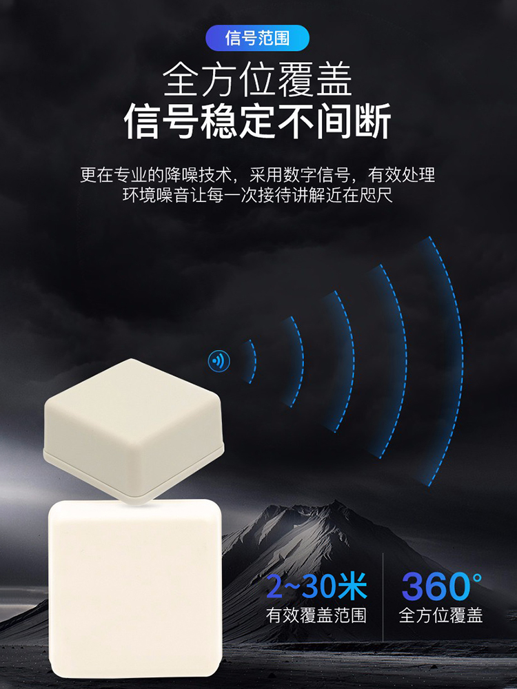 - 信號傳輸與音質(zhì)2.4G 頻段傳輸相比傳統(tǒng) UHF 頻段,抗干擾性更強,尤其適合多團隊同時使用的景區(qū),避免串頻問題。音質(zhì)方面,需支持降噪功能,通過定向發(fā)聲技術(shù)過濾環(huán)境雜音,確保清晰、飽滿、無雜音,即使在喧鬧的公共場所也能聽清講解內(nèi)容。
