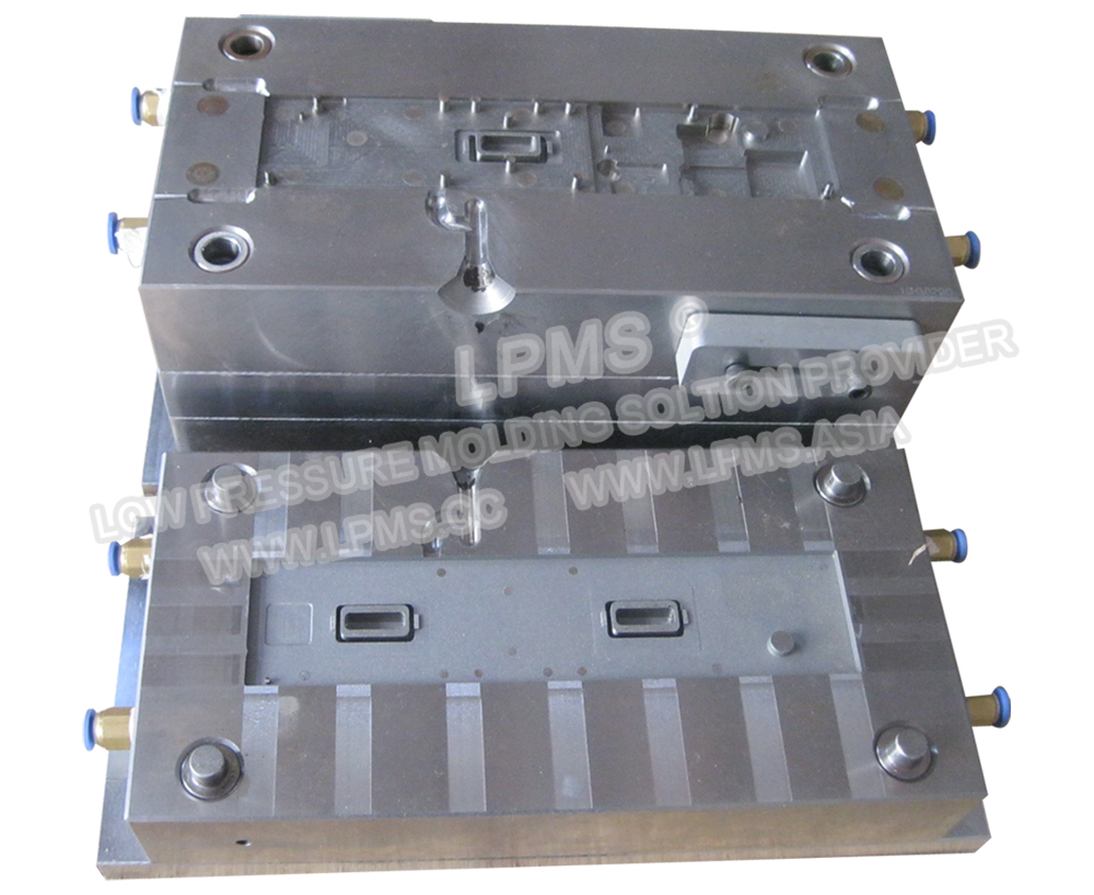 低壓注膠模具可用鋁材或鋼材製成,如果待封裝的元器件為鋼材或硬質(zhì)材料器件,建議模穴區(qū)域使用鋼材製作。