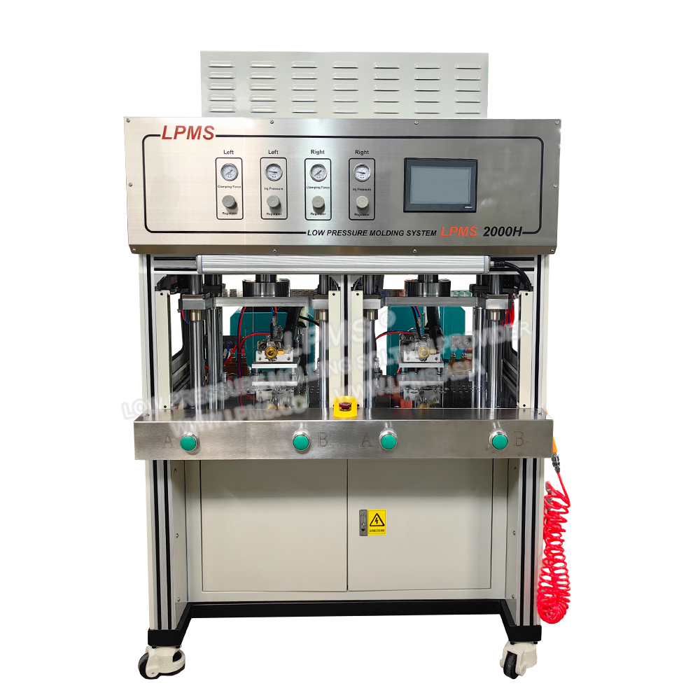 側式注膠系列, 給予多模穴與滑塊機構的模具較大的運用空間,適用於各式低壓熱熔膠成型樹脂對產品注膠包封。制程壓力低(0-6MPa),不會損傷零部件,無化學反應,成型快速,冷卻即成型,成型後產品具有絕緣與防水等性能。廣泛應用於:電池、感測器、線圈、線束、連接器、PCBA等精密敏感電子元器件的封裝與保護。
