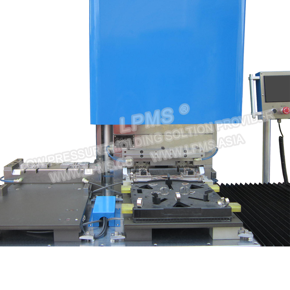 左右移模式工作臺, 一個上模對兩個下模,同時和客戶的生產(chǎn)線配合,生產(chǎn)過程實現(xiàn)自動化。