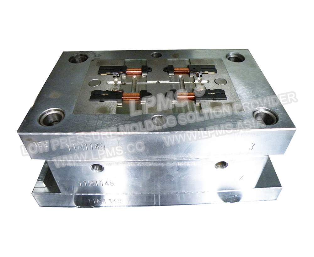 低壓注膠模具可用鋁材或鋼材製成,如果待封裝的元器件為鋼材或硬質(zhì)材料器件,建議模穴區(qū)域使用鋼材製作。